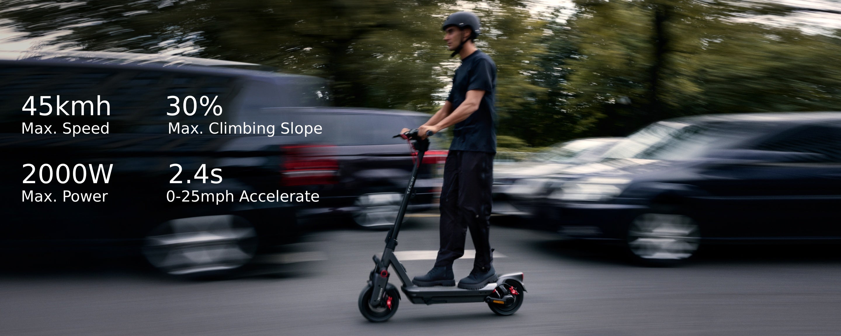 Ride up to 45 kmh and conquer inclines up to 30% with its powerful 2000W motor.