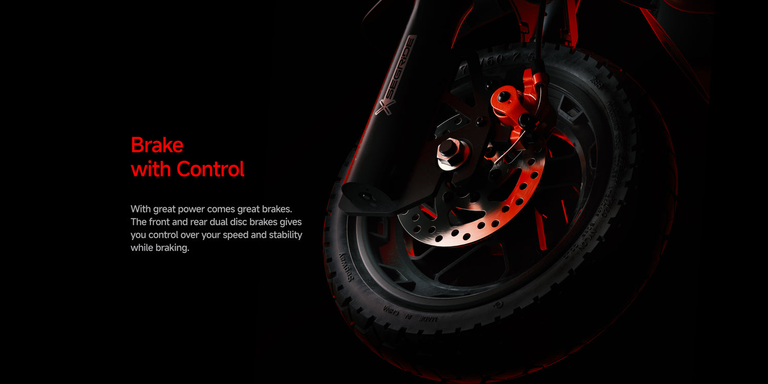 With great power comes great brakes. The front and rear dual disc brakes gives you control over your speed and stability while braking.